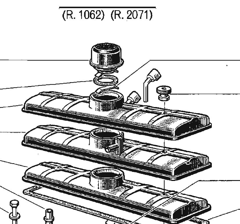 - Un respirador era el propi tap d’ompliment d’oli , dissenyat amb un element filtrant intern per deixar sortir els vapors. Aquesta configuració era típica en motors de lèpoca, sense connexions al filtre daire ni vàlvules antiretorn.