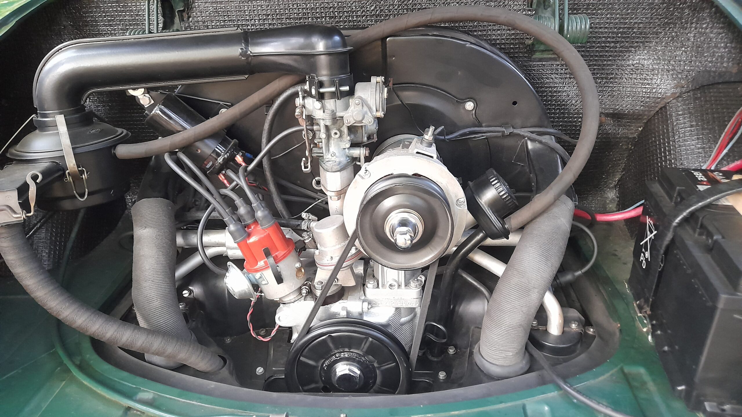 Le moteur a été entièrement reconstruit il y a moins de 400 km par un atelier spécialisé réputé de Majorque, spécialisé dans la mécanique des véhicules Volkswagen refroidis par air. La voiture est donc en phase de rodage, avec un fonctionnement très doux et une réponse élastique typique de ces moteurs bien réglés.