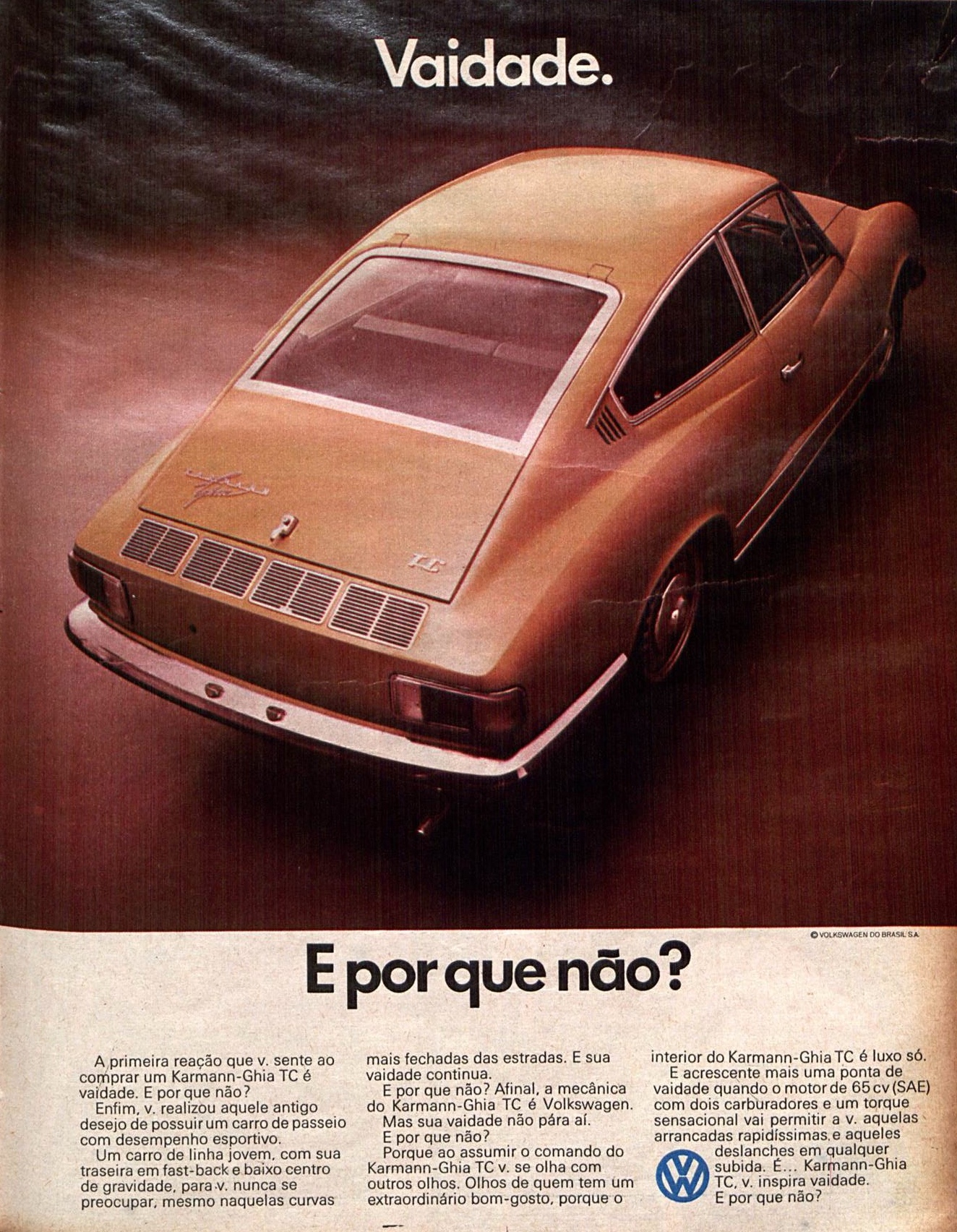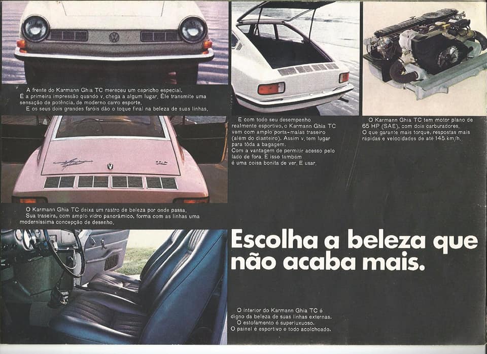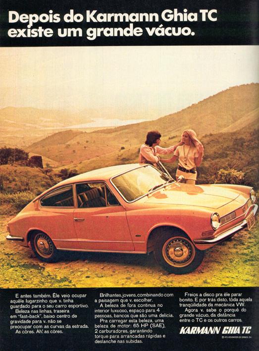 Fabriquée par Volkswagen do Brasil, la Karmann Ghia TC (Touring Coupé ) a été entièrement redessinée sur la base de la VW 1600 brésilienne. Sa carrosserie fastback des années 1970 rappelait vaguement la Porsche 911.