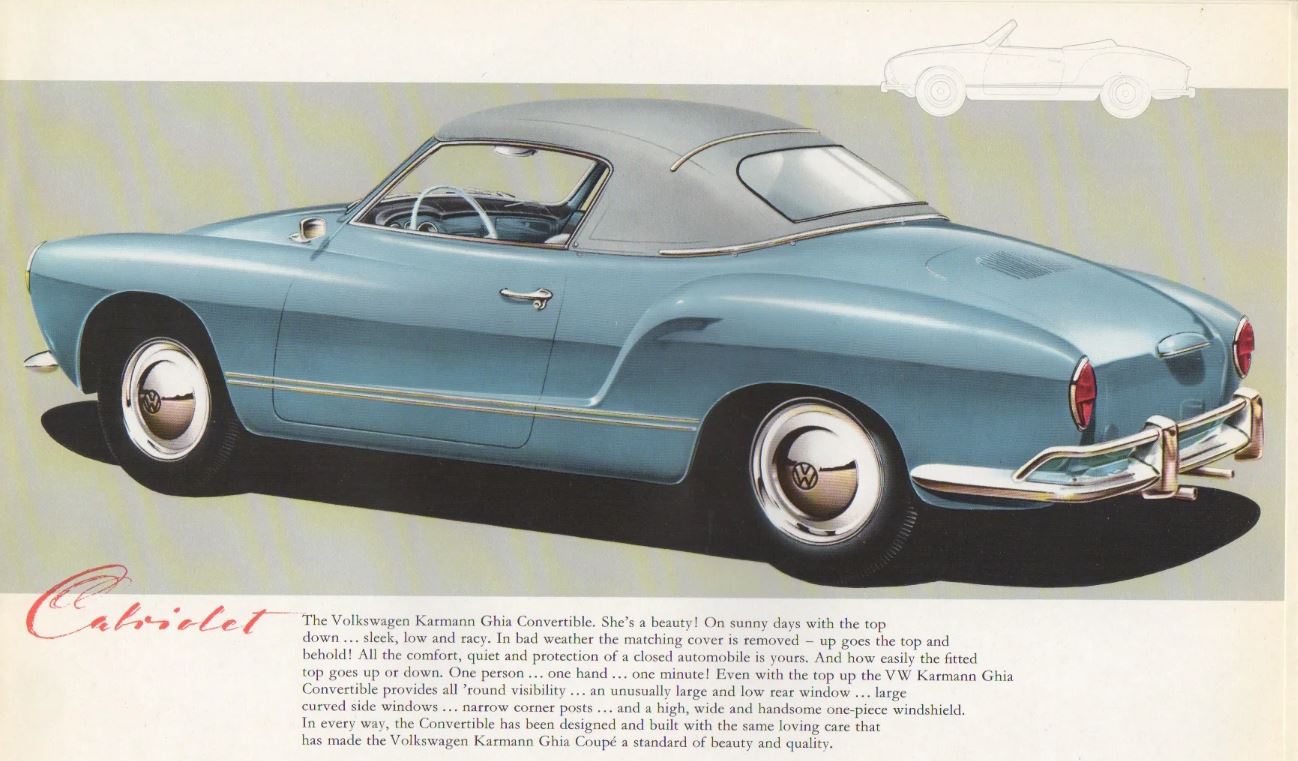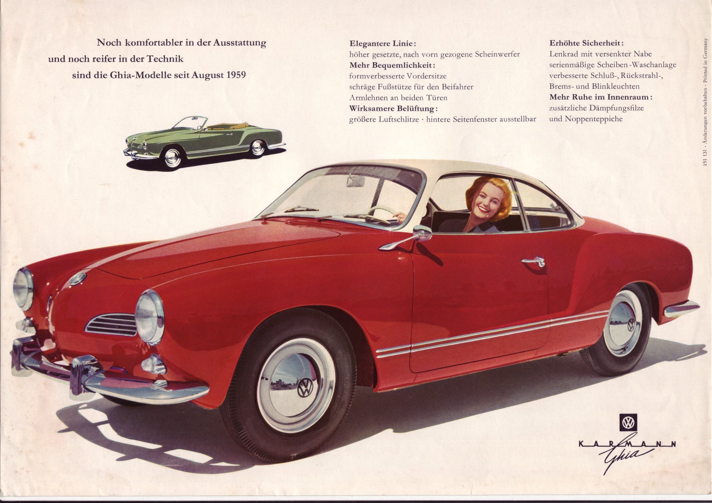 Wilhelm Karmann se tourne alors vers la Carrozzeria Ghia à Turin, où le designer Luigi Segre reprend un design inutilisé (conçu à l’origine pour Chrysler ou Studebaker) et l’adapte sur un châssis de Coccinelle élargi d’environ 30 cm pour lui donner de plus grandes proportions. Le prototype, présenté discrètement en 1953, séduit les dirigeants de Volkswagen qui autorisent sa production en série.